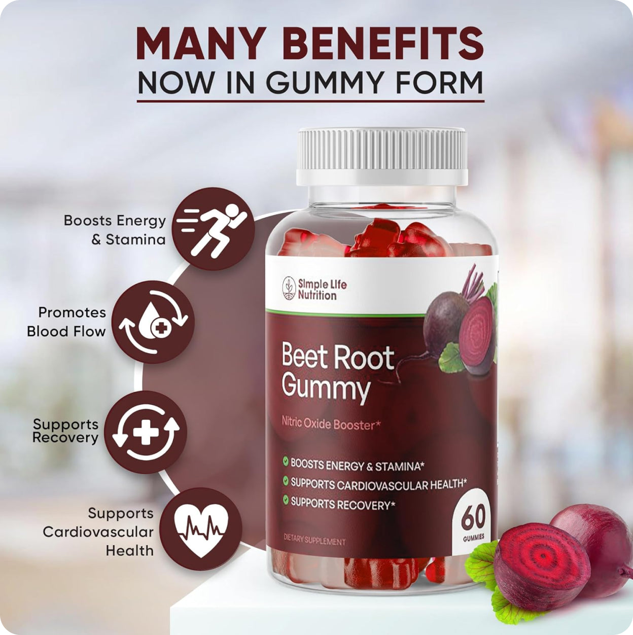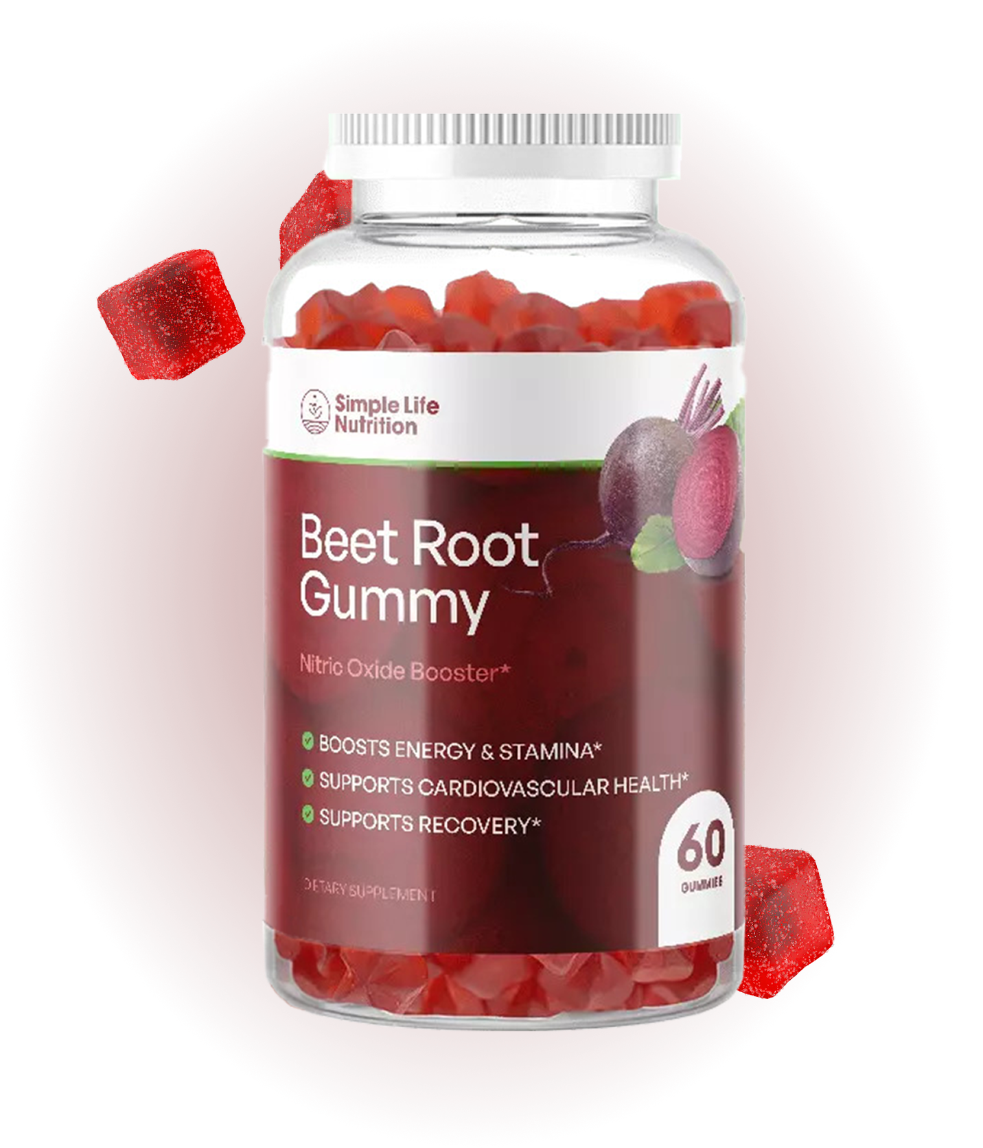 Simple Life Nutrition Beet Root Gummies are designed to support circulation and blood flow, energy levels, and athletic performance.